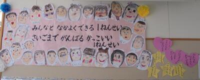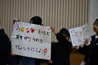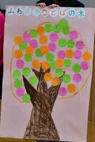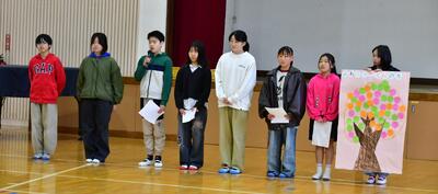 「ふわふわ言葉を使って、仲良くなろう」という目標に向かって、「ふわふわことばの木」の取組を発表しました。