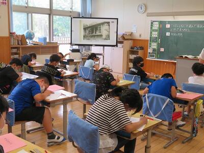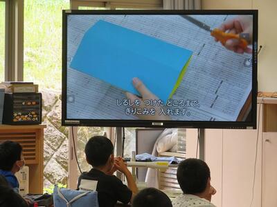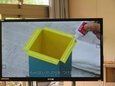 3年生図工、動画を見て道具などの使い方を確認していました。