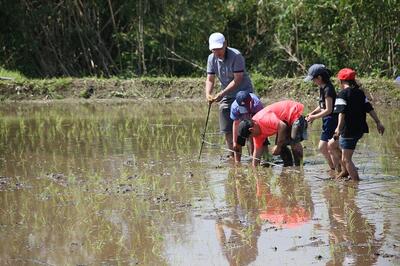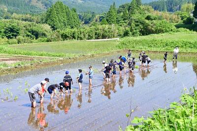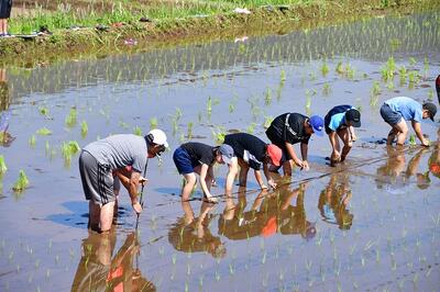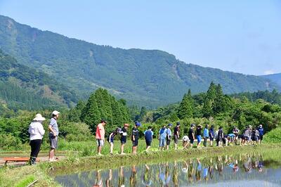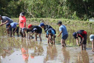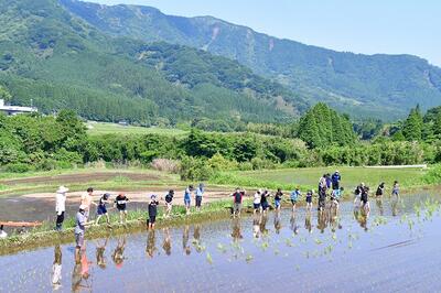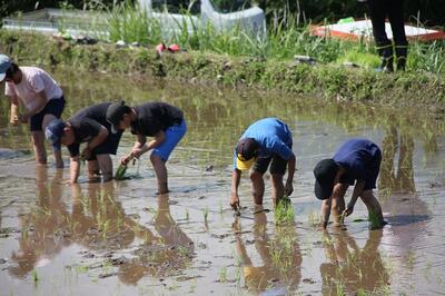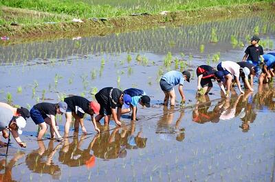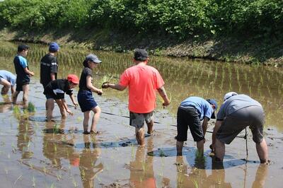 田んぼの温かい土の感触、思うように動かせない足、腰を曲げての作業、手作業での田植えは、初めての体験だったと思います。この体験を通して、米作りや農業について考える機会になって欲しいと思います。