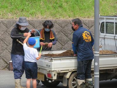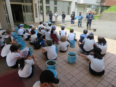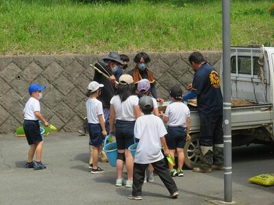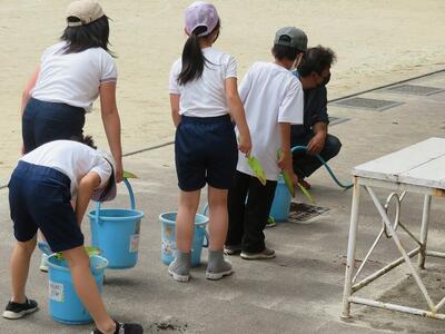 5・6時間目、3年生が「バケツ稲づくり」を行いました。指導はJA阿蘇の方と青年部の方々でした。でした。この「バケツ稲づくり」を通して、日本の稲作や農業に触れ、もっと身近に考えてもらいたいという思いから始まったそうです。学校では、稲作を学ぶ教材として幅広く活用されています。活動の様子です。