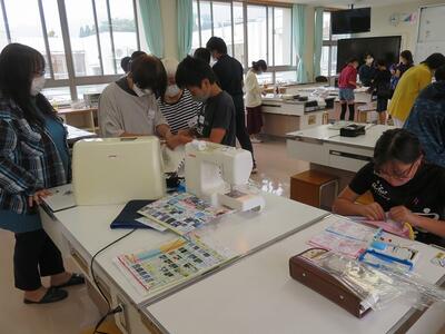 6年生では家庭科の裁縫、ミシンを使ったナップザックづくりの学習でした。この学習には学習サポーターの皆さんに学習支援をしていただきました。各グループに一人から二人入っていただき、充実した学習ができていました。