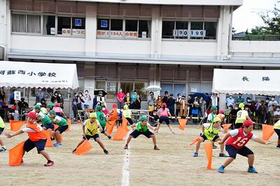 今日は午後から明日の運動会の準備を行いました。5時間目は全学年で、6時間目は4・5・6年生で行いました。
