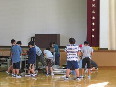 1時間目、高学年は運動会の後片付けでした。よく働く子ども達です。次々に片付けが進んでいきました。