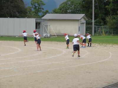 授業が終わる頃には、昨日より数段よくなっていました。バトンの受け渡しもなかなかかっこよく決まるようになりました。来週は、もっと上手になると思います。