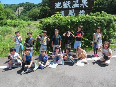 今日、2年生が生活科で「村たんけん」に出かけました。場所は、長陽保育園と地獄温泉です。見学やインタビューの勉強を頑張ってきました。
