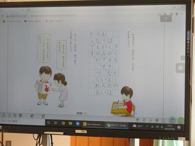 1年生は国語「おむすびころりん」、おむすびころりん、すっとんとん、リズムよく音読を楽しんでいました。