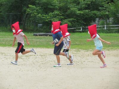 2年生、体育、雨のため体育館での活動、走り回って楽しそうでした。