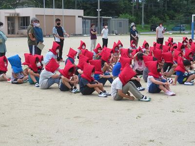 大きな地震を経験している子どもたちは、地震の怖さをよく知っていると思います。今日の訓練では「命を守る行動、避難の仕方を身に付ける」ことが目的でした。