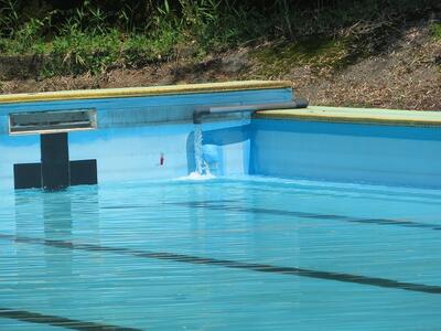 今日は、ちょっと肌寒い日でしたが、プールの準備が始まっています。