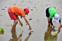 6月の中旬には、5年生が田んぼでの田植えをします。