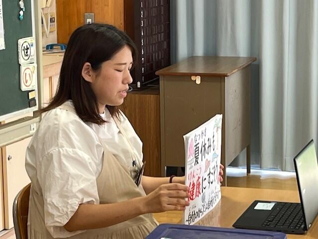 最後に、養護の堀川春菜先生から、夏休みの健康の話をしていただきました。