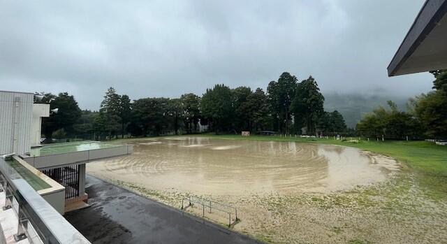 学校の写真を撮ってみましたが、写真では強い風雨の様子は伝わりにくく、運動場の大きな水たまりの写真を紹介します。