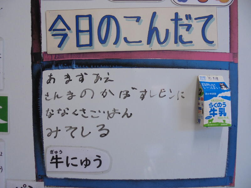 朝の会、1・2年生は、歌を歌っていました。動画の歌詞を見て楽しそうに歌っていました。