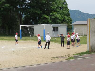 今日は全校一斉にスポーツテストが行われました。種目は、握力・上体起こし長座体前 屈・反復横とび・20mシャトルラン(往復持久走)・50m・走立ち幅とび・ボール投げです。1年生と6年生、2年生と5年生、3年生と4年生がペアになって、それぞれの種目に取り組みました。