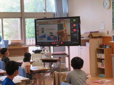 5時間目の授業、1年生、国語、「さ」の勉強、「さ」のつく言葉が板書されていました。いろいろ知っていました。楽しい言葉の発表もあっていました。
