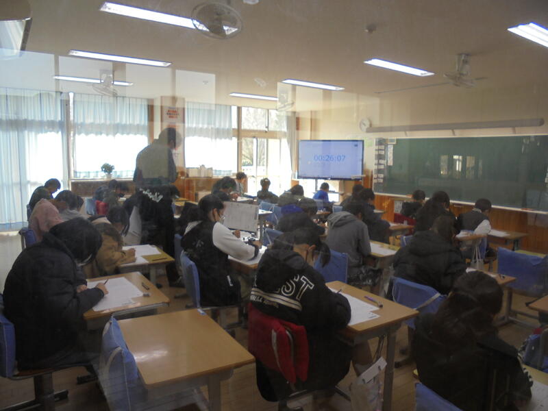 テスト中なので、廊下の窓越しに1枚だけ、6年生の様子を写真に収めました。