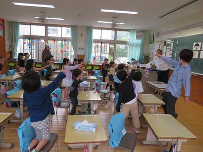 1年生は、外国語活動が行われ、英語でじゃんけんをしていました。