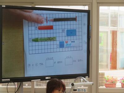 1時間目、1年生の算数は、「ながさのくらべかた」を勉強していました。