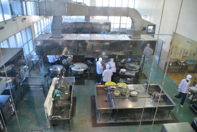2階から調理場を見下ろせるようになっていて、調理員さんたちがテキパキ働いていらっしゃいました。