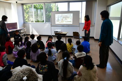 見学後に、白水小学校の栄養教諭の坂本先生から、給食センターのお話しをしていただきました。