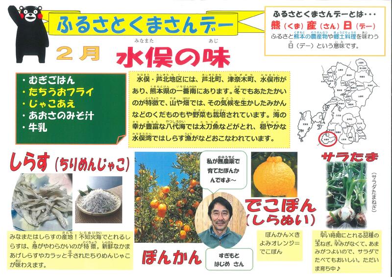 今月のふるさとくまさんデーは「水俣の味」でした。