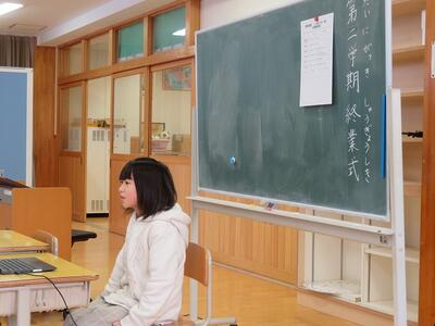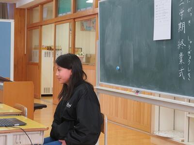 終業式は、リモートで行いました。4年生代表の2人が2学期に頑張ったことや思い出を発表しました。