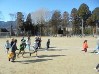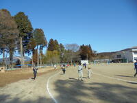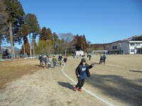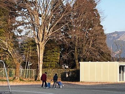 そんな中、始業前に運動場では6年生2名がランランタイムのためのライン引きをしていました。