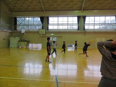 今日の2時間目、3年生と4年生の授業です。3年生は体育、体育館でのマット運動