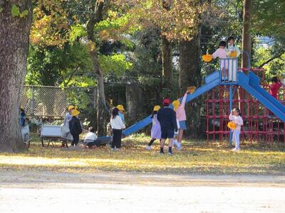昼休み、今日も外では落ち葉で遊ぶ子どもたち、1年生だけでなく他の学年も楽しんでいました。