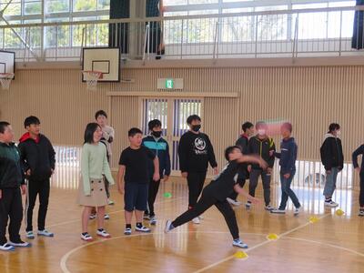 昨日、1年生と3年生の合同体育が行われ、ゲストティチャーとしてエアロビックの大村さんに指導をしていただきました。南阿蘇村では以前から大村さんに保育園の運動指導や社会体育(クラブ南阿蘇)の指導でお世話になっています。保育園で指導を受けていた子どもたち(1年生)は、大村さんとは久しぶりの再会でした。