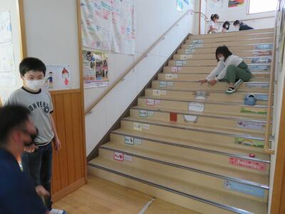 1年生は、外国語活動が行われ、英語でじゃんけんをしていました。
