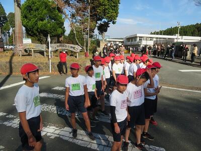 学校の周りを低学年(約1.0km)、中学年(約1.5km)、高学年(約2.0km)の順番で走りました。