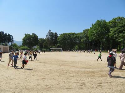 業間のランランタイムです。みんな元気に走っていました。5月、心地よい風が吹いてきて、子どもたちも楽しそうに走っていました。