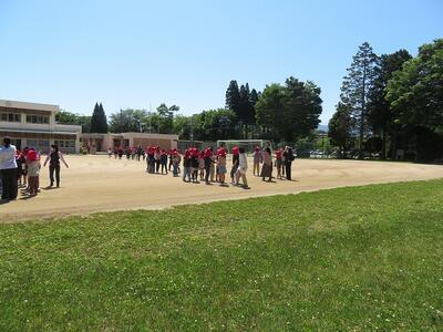 業間には「西っ子集会」が行われ、5月の目標の振り返りと6月の目標のお知らせがありました。