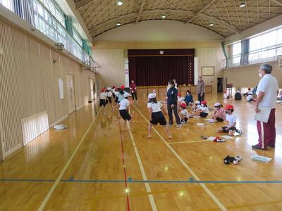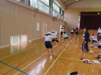 4年生は体育、体育館でのシャトルラン