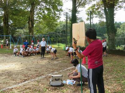 4時間目、明日の記録会本番に向けて最後の合同練習が行われました。それぞれの種目練習、リレー練習が行われました。(午後も、各学年で少しずつ練習が行われました。子どもたちも指導をされる先生方も気合い十分です)