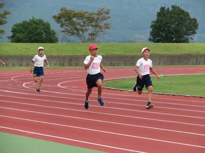 今日は、村の陸上記録会が阿蘇市のアピカ陸上競技場で行われました。3校の子どもたちが一堂に集まって行うのは3年ぶりでした。子どもたちは、アピカの広さに驚いたようでした。ほとんどの子どもたちが400mトラックの競技場を見るのも競技するのも初めてだったと思います。それでも昨日まで練習してきた力を発揮するために一生懸命走っていました。