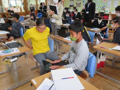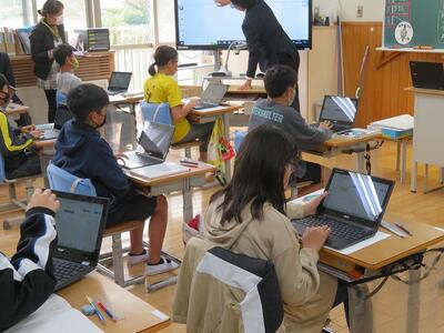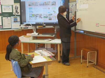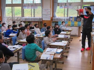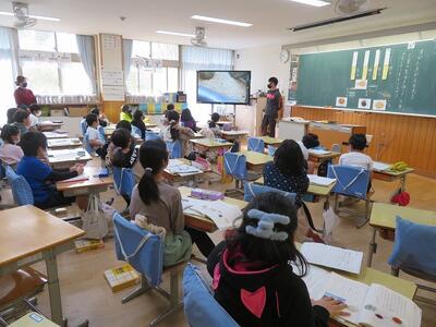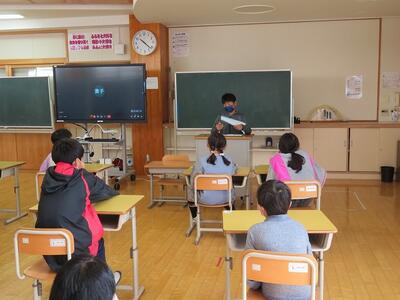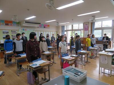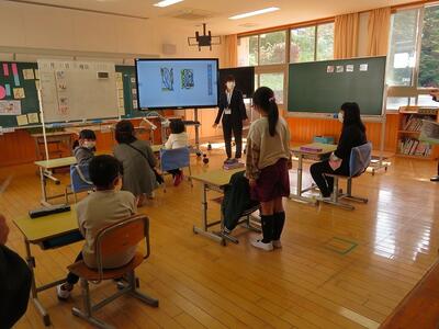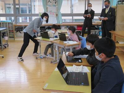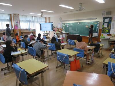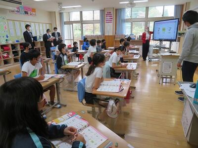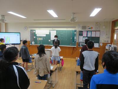 修学旅行が終えたばかりの6年生と皆川先生、疲れも見せずいつもと変わらない雰囲気のよい授業ができていました。他校の先生方にも参考になる授業だったと思います。