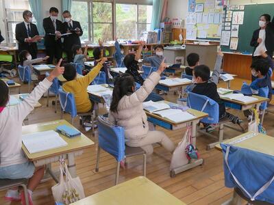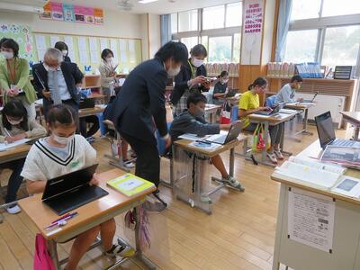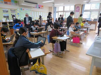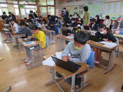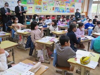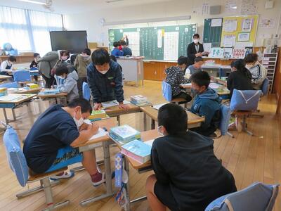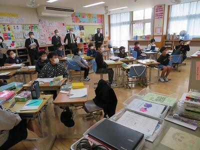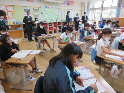 今日、村の教育委員会の学校訪問がありました。たくさんの方々が授業を参観されました。授業参観では、どの学級も工夫を凝らした授業が行われており、子どもたちの一生懸命な姿も見られました。授業の様子です。