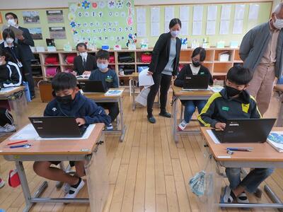 今日の5時間目、学校訪問がありました。先週は村の教育委員会の学校訪問でしたが、今日は、県教育委員会の学校訪問でした。5時間目の授業参観でしたが、みんなしっかり学習している様子を褒めていただきました。(授業参観の様子、一部)
