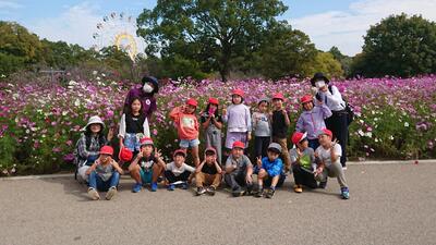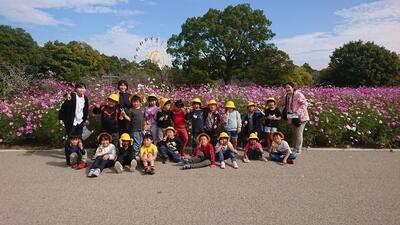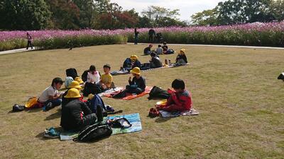 午後からの様子です。お弁当の後、きれいなコスモス畑をバックに記念撮影をしました。午後は、1年、2年別れて活動しました。この見学旅行で学校の中ではできない学びができました。きっとこれからの学校生活への意欲にもつながると思います。