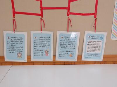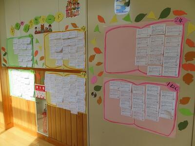 それぞれ担当の先生方が工夫してつくって下さってます。いつもありがとうございます。子どもたちは、よく掲示物を見ています。
