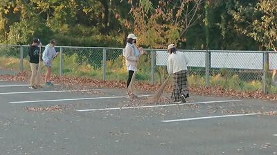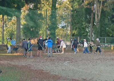 昨日は雨も降りましたが、今日は晴天でした。今朝も6年生を中心としたボランティアによる落ち葉掃きが行われていました。