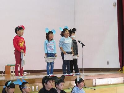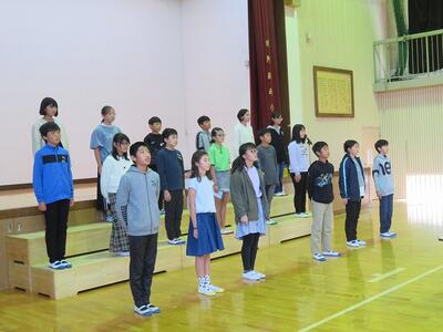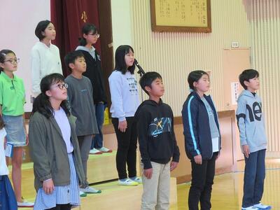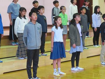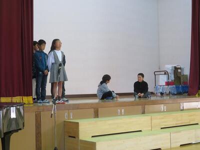 先週から11日行われる学習発表会に向けて、体育館や教室などで、学年ごとに練習に取り組んでいます。発表内容は、教科や総合的な学習の時間、行事での学びなど様々です。本番まで後2日となり、各学年練習にも一段と力が入ってきました。