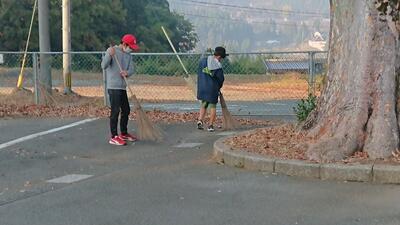 今朝は、冷え込みましたが、朝から登校した6年生を中心に「落ち葉掃き」をする子どもたちがいて、寒さも一気に吹き飛びました。