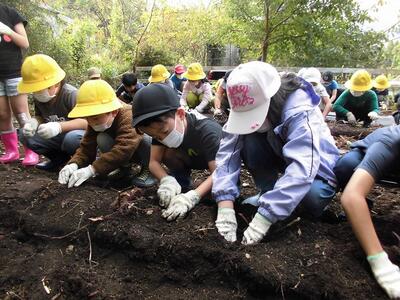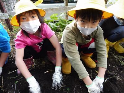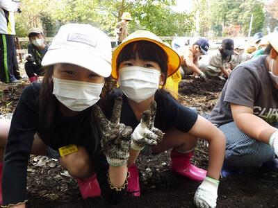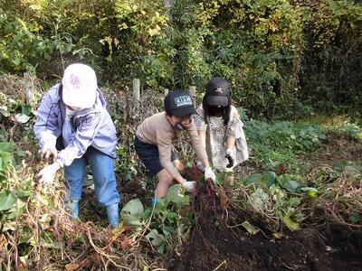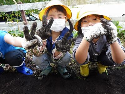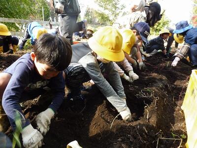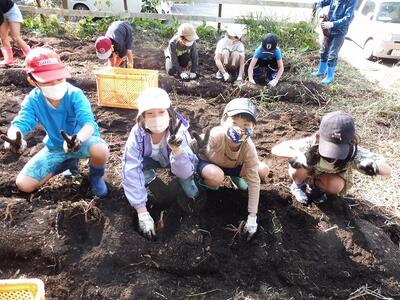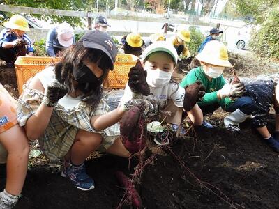 昨日の5時間目、1・2年生がサツマイモの収穫をしました。サツマイモのツルは先に先生方にとってもらって、子どもたちは茎のまわりの土を掘って芋を見つけていました。最初は掘ってもなかなかサツマイモが出てきませんでした。根気強く掘っていくとサツマイモが出てきました。大きくても小さくても土の中から出てくるサツマイモに大喜びでした。