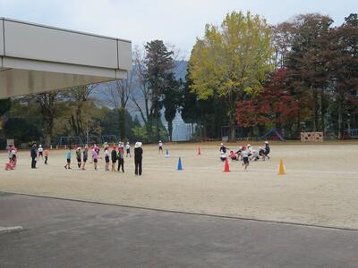 今日は寒い一日でした。それでも寒さに負けず、外で元気に体育をする学年もありました。3年生の体育の様子です。