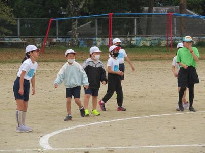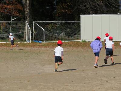 11月の中旬から持久走大会に向けた練習が始まっていますが、今日からいよいよコースに出ての練習が始まりました。今日は、2時間目に中学年3・4年生が道路に出てコース練習をしました。みんな元気よく走っていました。