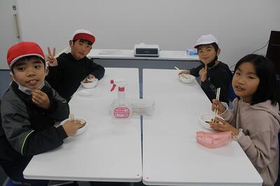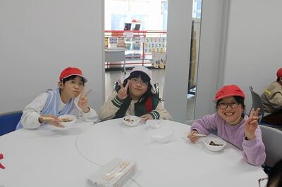 昨日、3年生が見学旅行に行きました。見学地は、菊陽町の味千ラーメン工場と、熊本市の熊本博物館でした。見学旅行のめあては、①工場を見学したり、話を聞いたりして、働く人たちの工夫や思いを学ぶこと、②博物館を見学して、熊本の歴史や文化を知り、昔の道具やくらしを学ぶこと、③みんなで仲良くすごし、ルールやマナーを身につけることでした。味千ラーメン工場では、体験活動をしたり、お土産をもらったり、とても思い出に残る一日となりました。