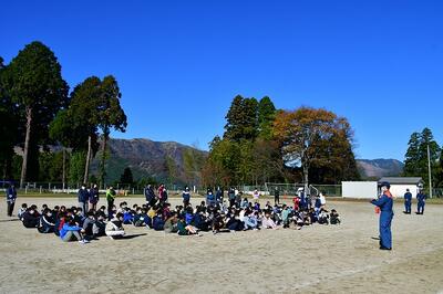 全員が落ち着いて避難することができました。避難を指示する放送から全員が避難場所に避難するまで2分20秒でした。消防署の方からも、静かに迅速に避難できていたことを褒めて頂きました。
